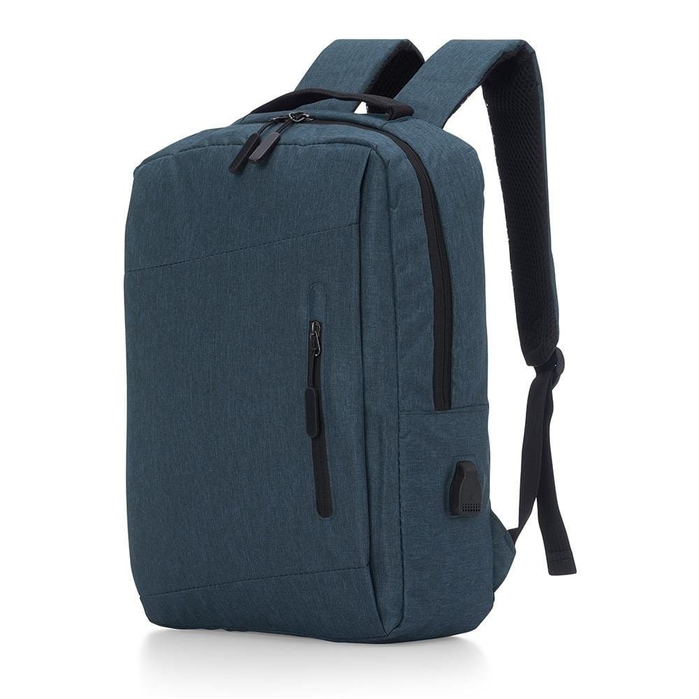 Descrição: Mochila confeccionada em nylon com compartimento para notebook até 15,6 polegadas. Contém compartimento grande com divisórias para documentos, eletrônicos e caneta, dois compartimentos frontais com abertura vertical, bolso lateral e adaptador USB externo com cabo acoplado, permitindo a conexão de um carregador portátil de dentro da mochila e transferência da carga para o lado externo, ocultando o carregador e viabilizando a utilização do celular durante o processo. Contém zíperes com pegadores plásticos, alça de mão em nylon e alças para as costas ajustáveis com revestimento espumado antitranspirante.